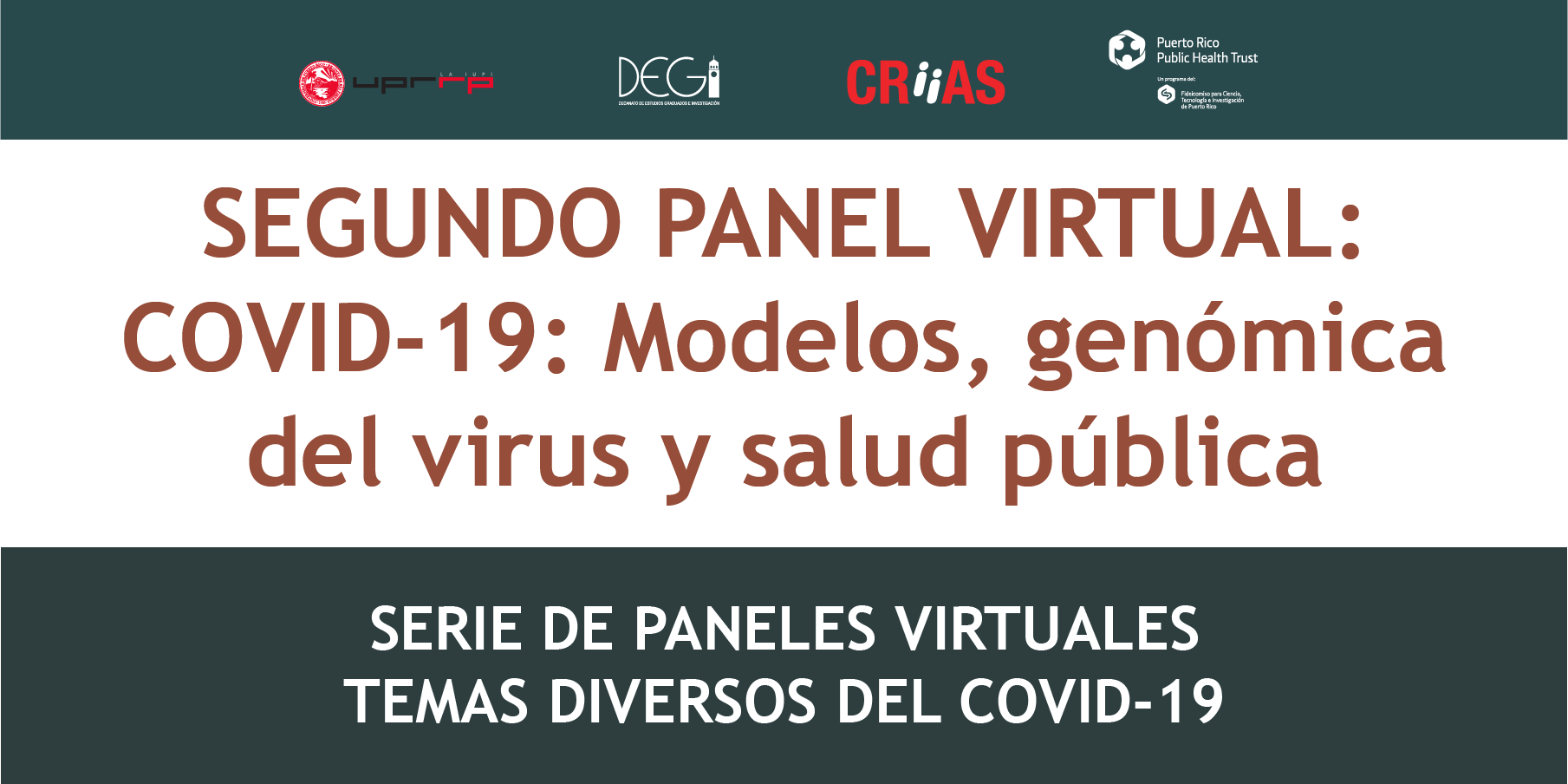 El Centro de Investigación Interdisciplinaria y Aprendizaje Subgraduado (CRiiAS)), adscrito al Decanato de Estudios Graduados e Investigación (DEGI) de la Universidad de Puerto Rico, Recinto de Río Piedras, auspiciará semanalmente durante los meses de abril y mayo una serie de paneles virtuales sobre diversos temas relacionados a la pandemia del COVID-19.