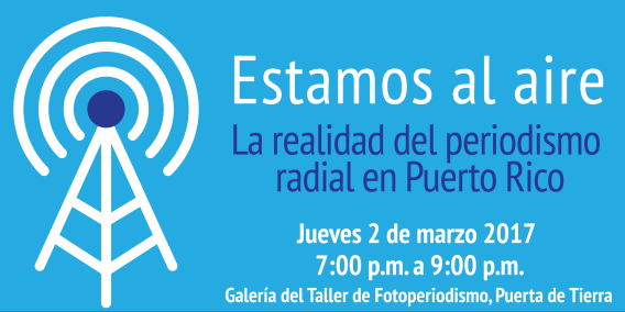 El Foro “Estamos al aire, la realidad del periodismo radial en Puerto Rico”, está pautado para las 7:00 de la noche en la Galería del Taller de Fotoperiodismo en Puerta de Tierra y es abierto al público, dijo el Presidente de la ASPPRO, Juan Hernández. El panel, moderado por la primera vicepresidenta de la ASPPRO, Damaris Suárez, quien modera el espacio radial ‘El Fuetazo’ en Radio Isla, estará integrado por la veterana periodista Wilda Rodríguez, analista, columnista y creadora del segmento “La Bola de Pegao”; la periodista y catedrática de la UPR, Norma Valle, moderadora de ‘Agenda de Hoy’ de Radio Universidad; el periodista radial José Elías Torres, moderador del programa ‘Hoy mismo’, de WPAB en Ponce; y Alex Delgado, Director de Programación de Notiuno.