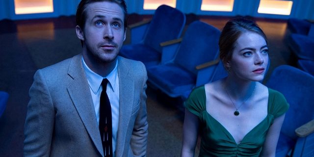 Esta cinta, de argumento muy simple y bien conocido: los esfuerzos de dos jóvenes en Los Ángeles para triunfar en sus respectivos campos: el drama en el caso de ella y la música en el de él, se nos muestra en forma de un musical. Este ha obtenido en empate con dos cintas previas, All About Eve de 1950 y Titanic del año 1997, el máximo de nominaciones en la história de los Oscar que anualmente concede la Academia de Artes y Ciencias Cinematográficas. Esas catorce nominaciones hacen del filme uno que suscita el interés.