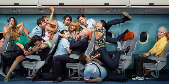 Los amantes pasajeros es totalmente diferente a esas obras recientes. Es una comedia sexual cuya acción sucede en buena medida dentro de los estrechos confines de la clase ejecutiva de un avión que, partiendo del aeropuerto de Barajas, se encamina a México.